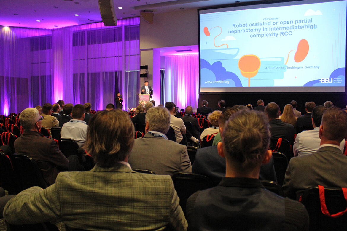 EAU Secretary General, Prof. Arnulf Stenzl (DE), presented the EAU Lecture “Robotic-assisted or open partial nephrectomy in intermediate/high complexity RCC.” He stated that OpeRa is the first RCT comparing open partial nephrectomy (OPN) and robot-assisted partial nephrectomy (RAPN) in intermediate/high complexity renal tumours. The trial faced early termination due to slow recruitment. RAPN demonstrated a lower 30-day complication rate, fewer high-grade events, and shorter hospital stays; however, it required longer operative times. Patients undergoing RAPN reported less pain, used fewer opioids, and had better quality of life (up to POD30). RAPN patients also required less epidural anaesthesia.